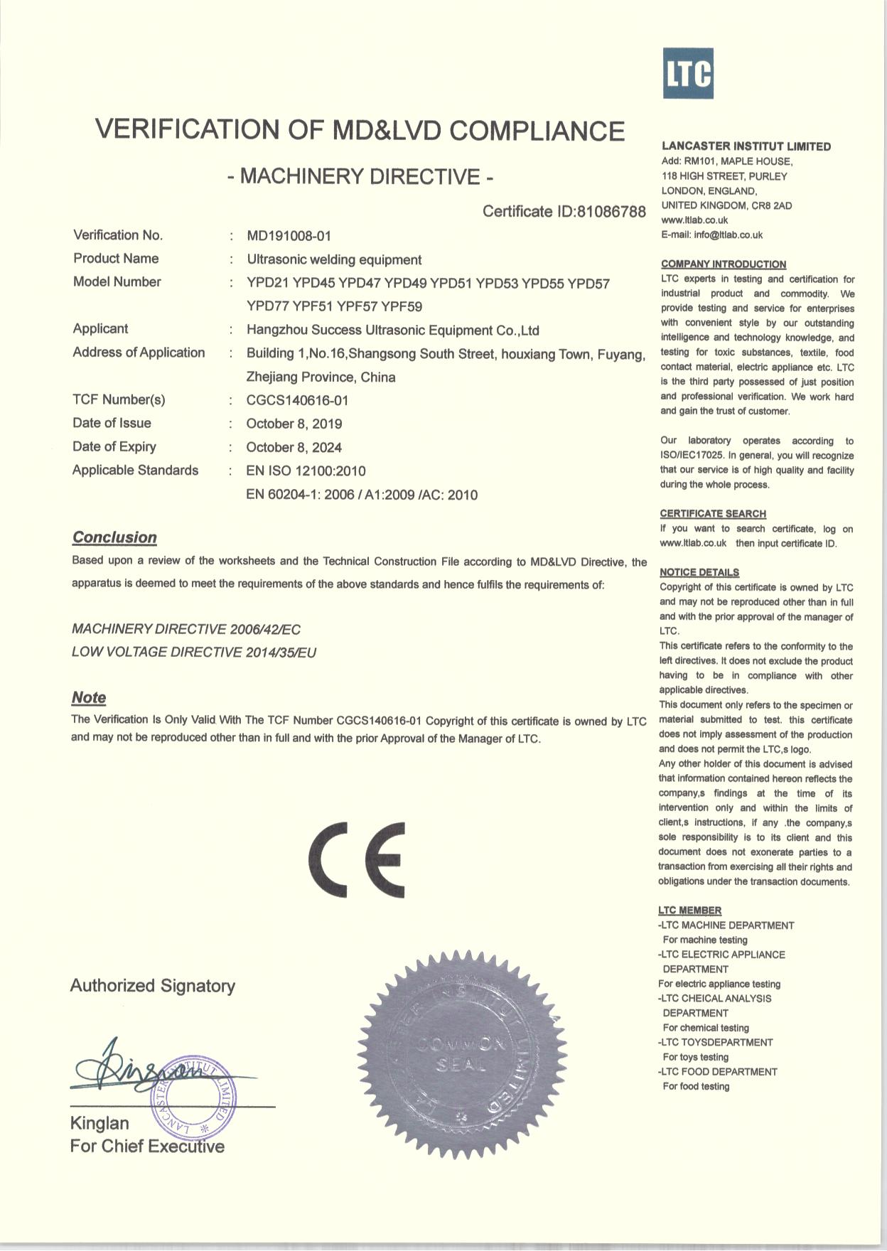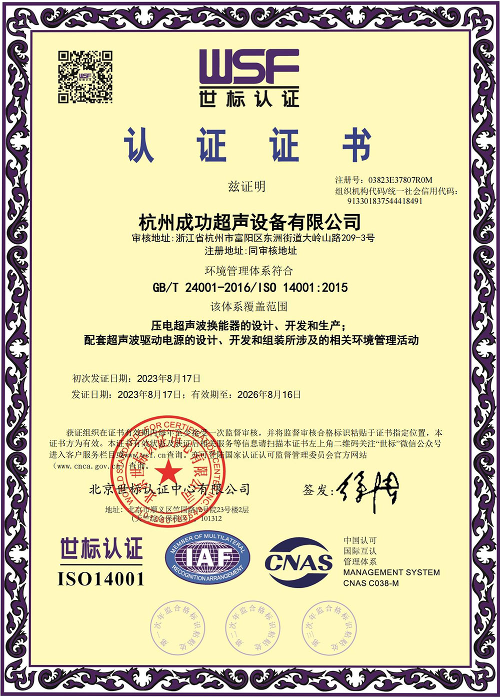 杭州成功超聲設備有限公司創立于1995年,是國內從事超聲應用研究、大功率超聲波換能器開發與生產的專業廠商及國家高新技術企業。公司主要產品有換能器、超聲驅動電源等。這些產品作為功率超聲應用行業的核心關鍵部件廣泛應用于聲化學、塑料焊接、金屬焊接、橡膠切割、無紡布焊接等領域。公司對中國換能器產品進行了行業的命名和行業標準的確定。產品遍布全國并行銷海外多個國家和地區,品質和性能在行業中負有盛名,其中超聲焊接換能器國內市場占有率達到50%以上。